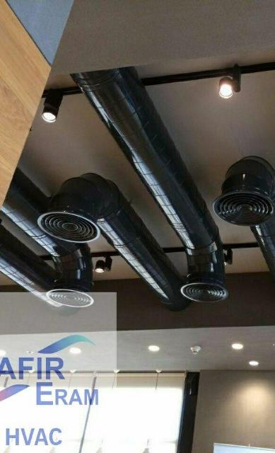 در راستای طراحی و معماری پروژه کانالهای هوا به صورت اکس پوز با رنگ مشکی اجرا گردید که خود المانی از معماری لحاظ شد.